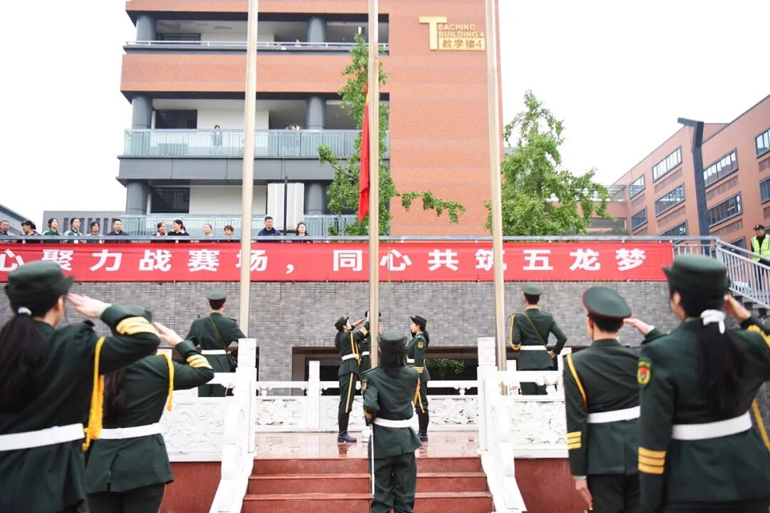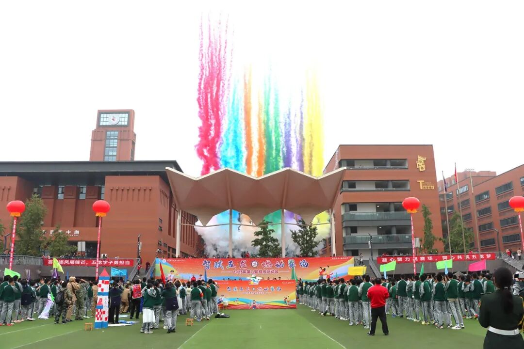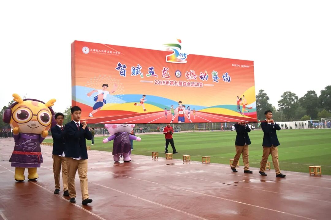 当金秋的阳光洒满五龙山校园,当多元的语言唱响运动的序曲,成都实外新都五龙山学校第九届综合运动会于万众期待中盛大启幕。这场以“智赋五龙 燃动赛场”为主题的盛会,不仅是青春活力与竞技激情的精彩碰撞,更是学校深入贯彻党的教育方针,全面落实“五育并举”、深化体教融合的生动实践。在国家“健康第一”教育理念和《关于全面加强和改进新时代学校体育工作的意见》的指引下,我校始终将体育置于立德树人、促进学生全面发展的核心位置。今日的赛场,是“立德树人,办人民满意的教育”办学宗旨的实践舞台,是“修身正心,格物致知”校训精神的活力彰显;每一个跃动的身影,每一场精心编排的表演,都在诠释“培养学生终身发展力”的育人目标,践行“唤醒生命内力,培养核心素养,奠基幸福人生”的教育初心。