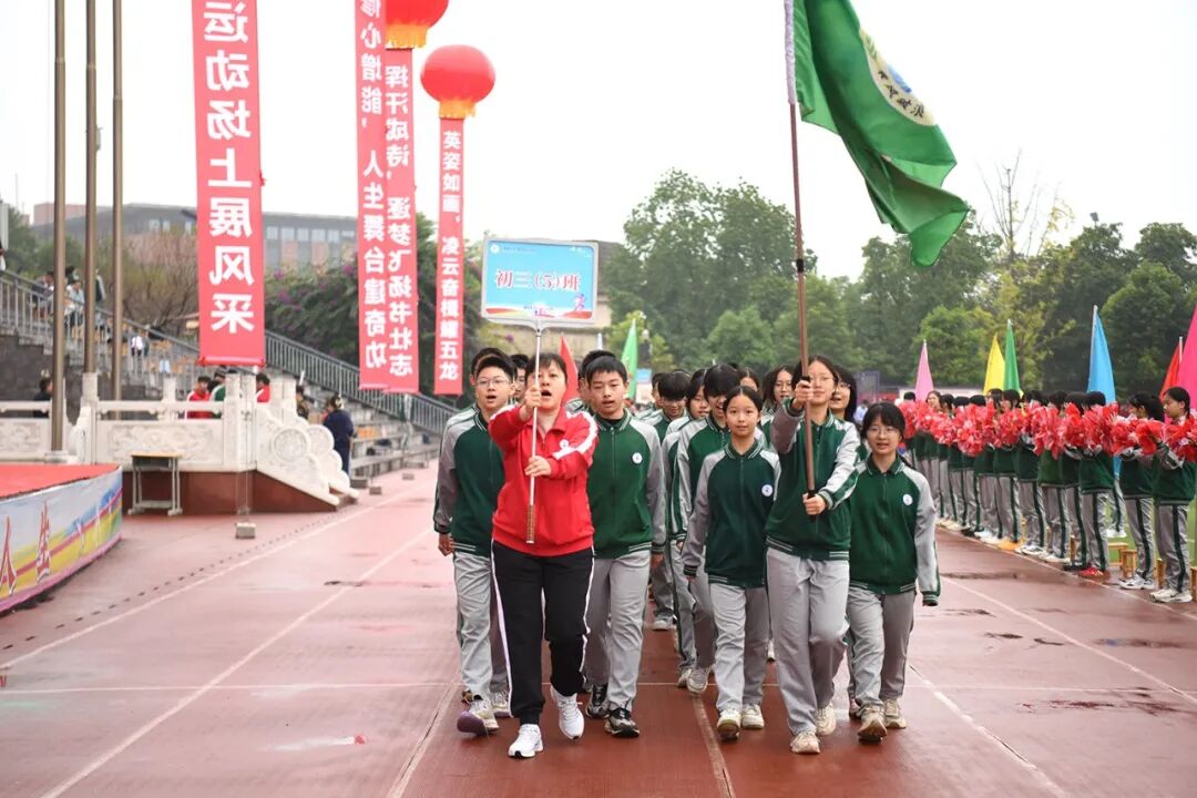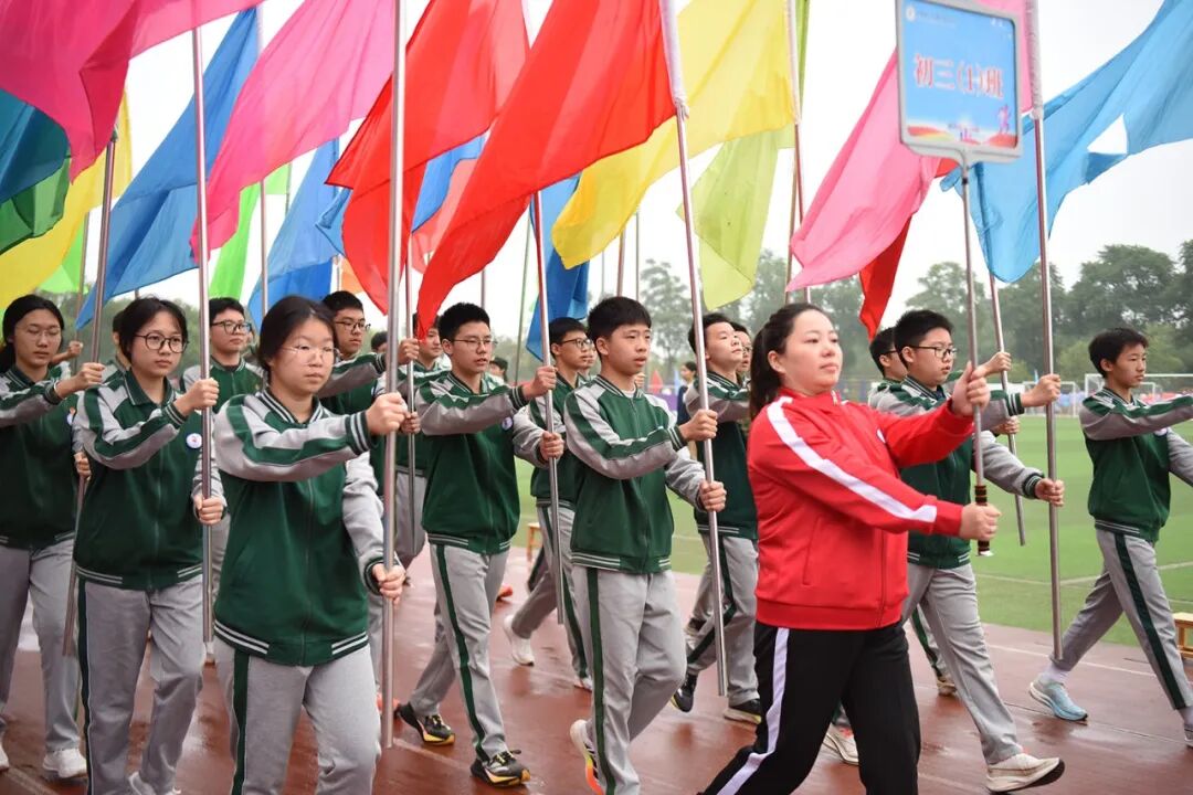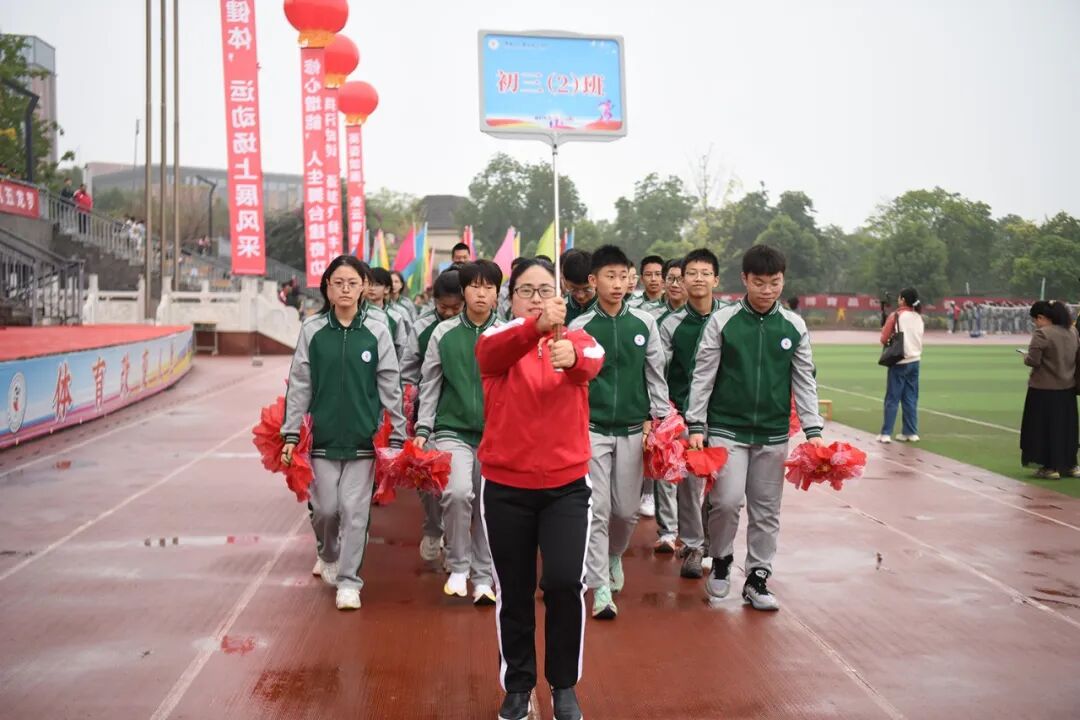 彩旗队(初2023级1班):五彩彩旗迎风招展,恰似少年斑斓的梦想。作为初三学子,他们以彩旗为笔,书写对运动的热爱,更传递冲刺中考的决心。“在赛场与考场皆能乘风破浪”,这是对“智慧青年”的最佳注解——既能在书山攀登,也能在赛场驰骋。
