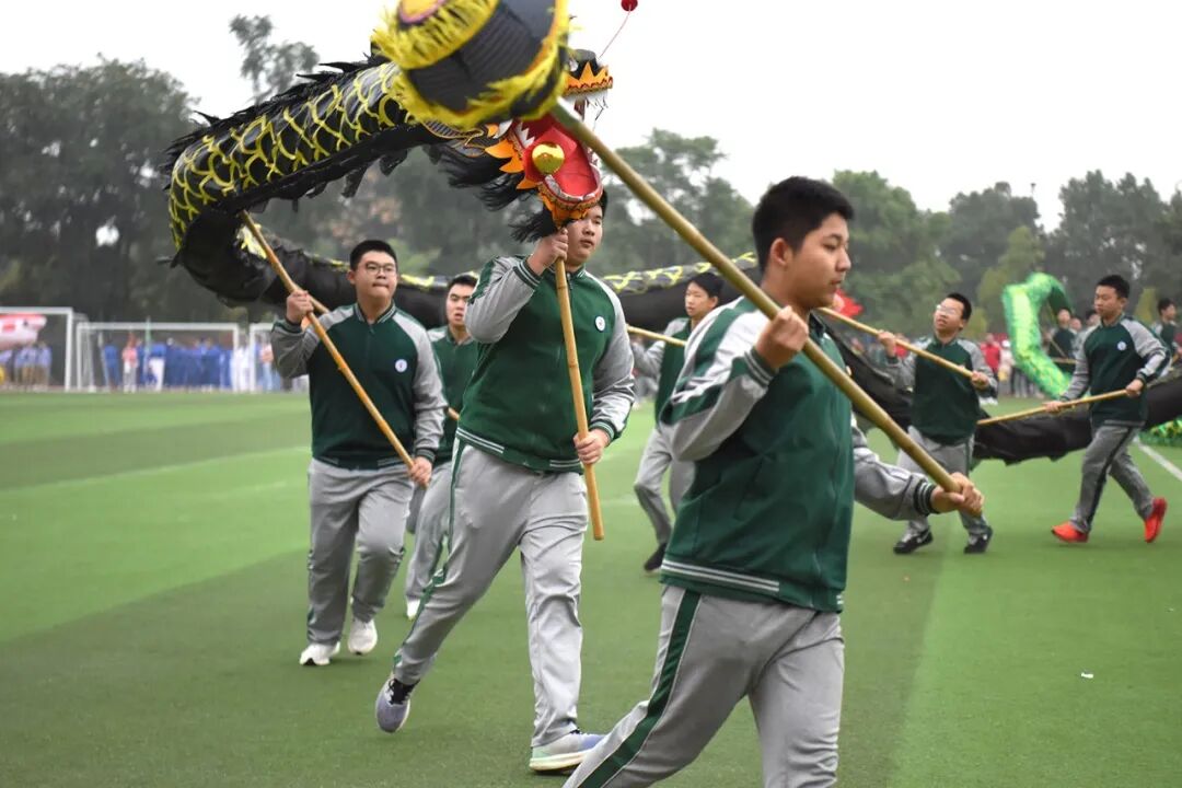 “龙,是中华民族的图腾,是力量、智慧与祥瑞的化身!”伴随着解说,承载着五龙精神的巨龙登场。龙的腾跃,呼应着学校“智赋五龙”的主题,更象征着五龙学子在“格物致知”的探索中,不断汲取力量、突破自我。这场表演让传统与现代交融,让学子们在触摸文化根脉的同时,读懂“智慧青年”应有的气魄——既承传统之魂,又具创新之力。