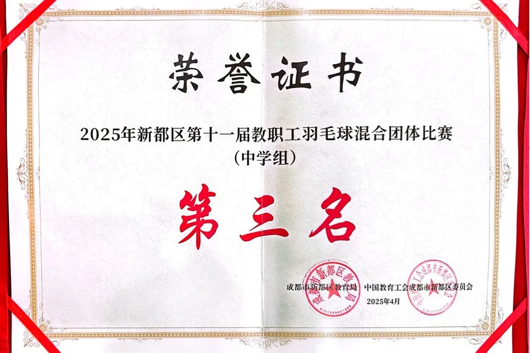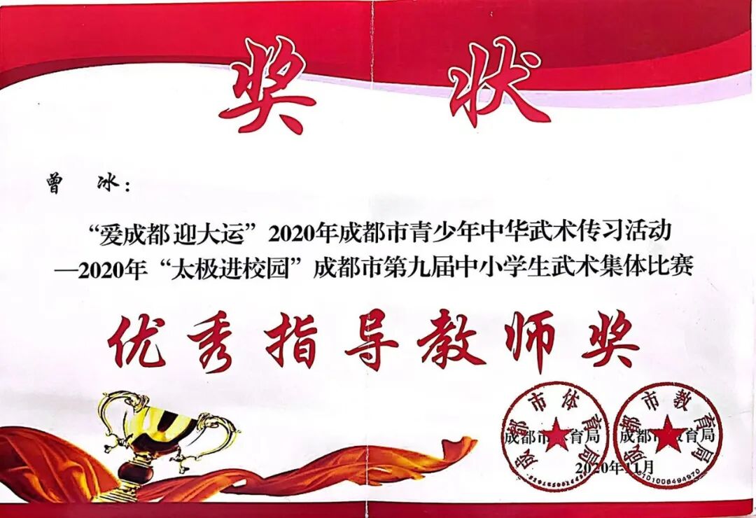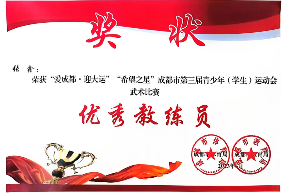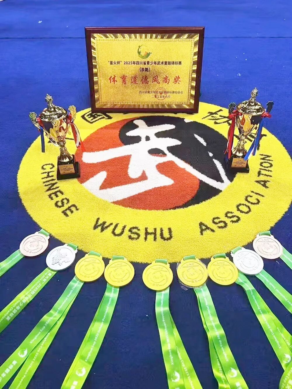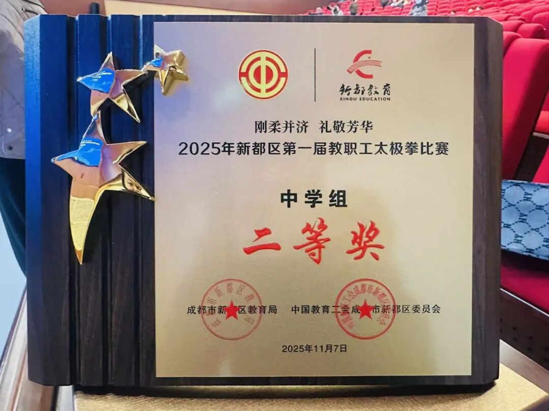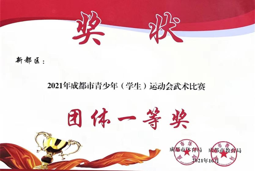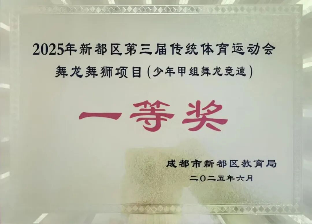 • 省市级赛事垄断优势:连续多年蝉联成都市学生运动会武术项目一等奖第一名,斩获新都区第一届中华传统体育运动会太极拳团体一等奖、成都市全民健身运动会小学组太极拳集体项目一等奖等数十项荣誉,多次获评“体育道德风尚奖运动队”。
