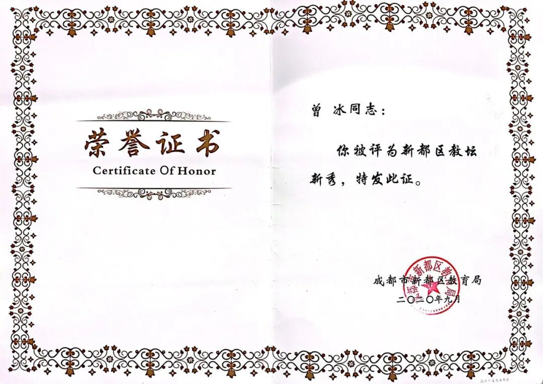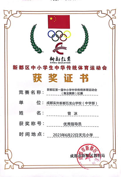 • 新都区第三届传统体育运动会舞龙舞狮项目(少年甲组舞龙竞速)“一等奖”