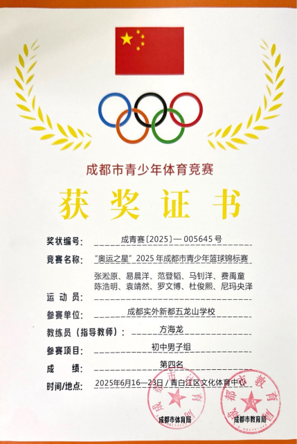 • 2025四川省“星火杯”青少年篮球锦标赛亚军