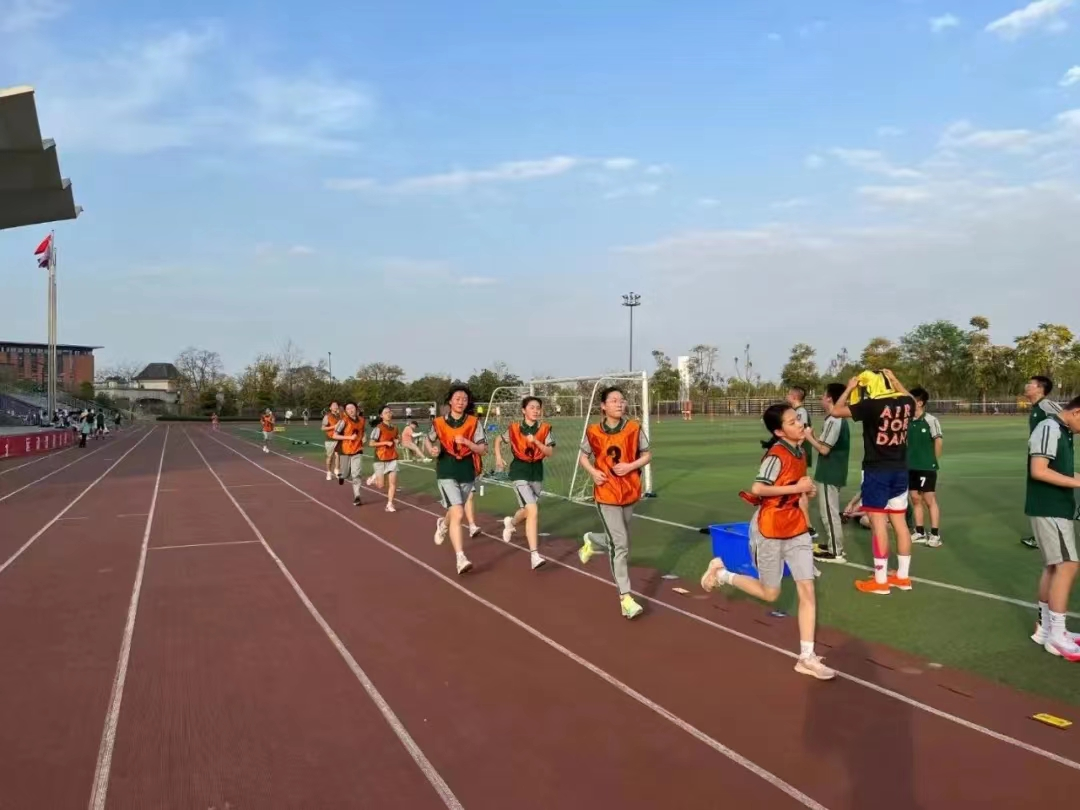 成都实外新都五龙山学校以“健康第一、个性发展”为核心,围绕“立德树人”的根本任务,以“把懵懂少年培养成智慧青年,培养学生终身发展力”为培养目标,奉行“严师出高徒”的教育思想,积极打造“运动与健康校园”、“书香与研究校园”、“欢乐与幸福校园”,为学生成长搭建广阔的平台,促进其全面发展、终身发展。打破传统体育教学边界,构建“特色课程+品牌活动”为一体的体育组建设模式,让体育成为学生成长的“活力引擎”。