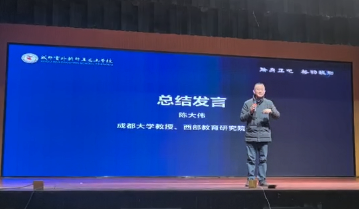 陈大伟院长为本次教学研讨会做总结发言,他对参会的老师们提出了三个要求和一点建议:一要有紧迫感,打开思维;二要实验,以实验领先,敢于创新;三要共建互动,有更全面更丰富的认识,多观课,发现实践中存在的问题。在人工智能时代,他建议语文教师多写下水作文,通过人工智能,实现教学相长,从而提升教学品质。