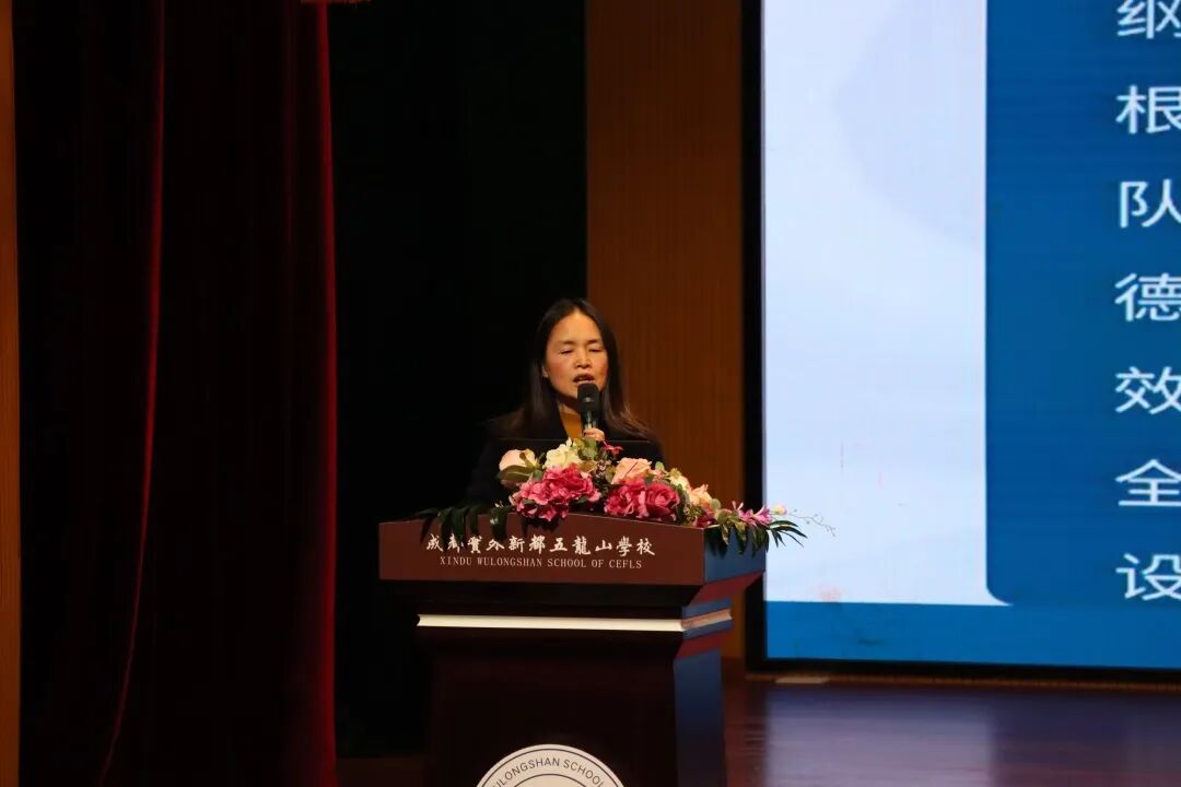 在‌成都实外新都五龙山学校“李玉秀名班主任工作室”成立大会上,“名班主任工作室”领衔人李玉秀老师作了“名班主任工作室建设方案”的发言。李玉秀老师从七个方面阐述“名班主任工作室建设方案”。